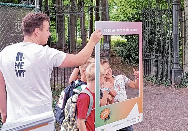 Langs de route stonden we klaar met een tof fotoframe, een ouderwetse polaroidcamera en een enthousiast team. Honderden kinderen kwamen langs voor een gekke bek, hun mooiste glimlach en natuurlijk… een échte gouden foto! Iedereen kreeg zijn foto direct mee naar huis als blijvende herinnering aan het wandelavontuur én aan De Gouden Formule. Geen digitale opsmuk – gewoon een tastbare herinnering om trots op te zijn.